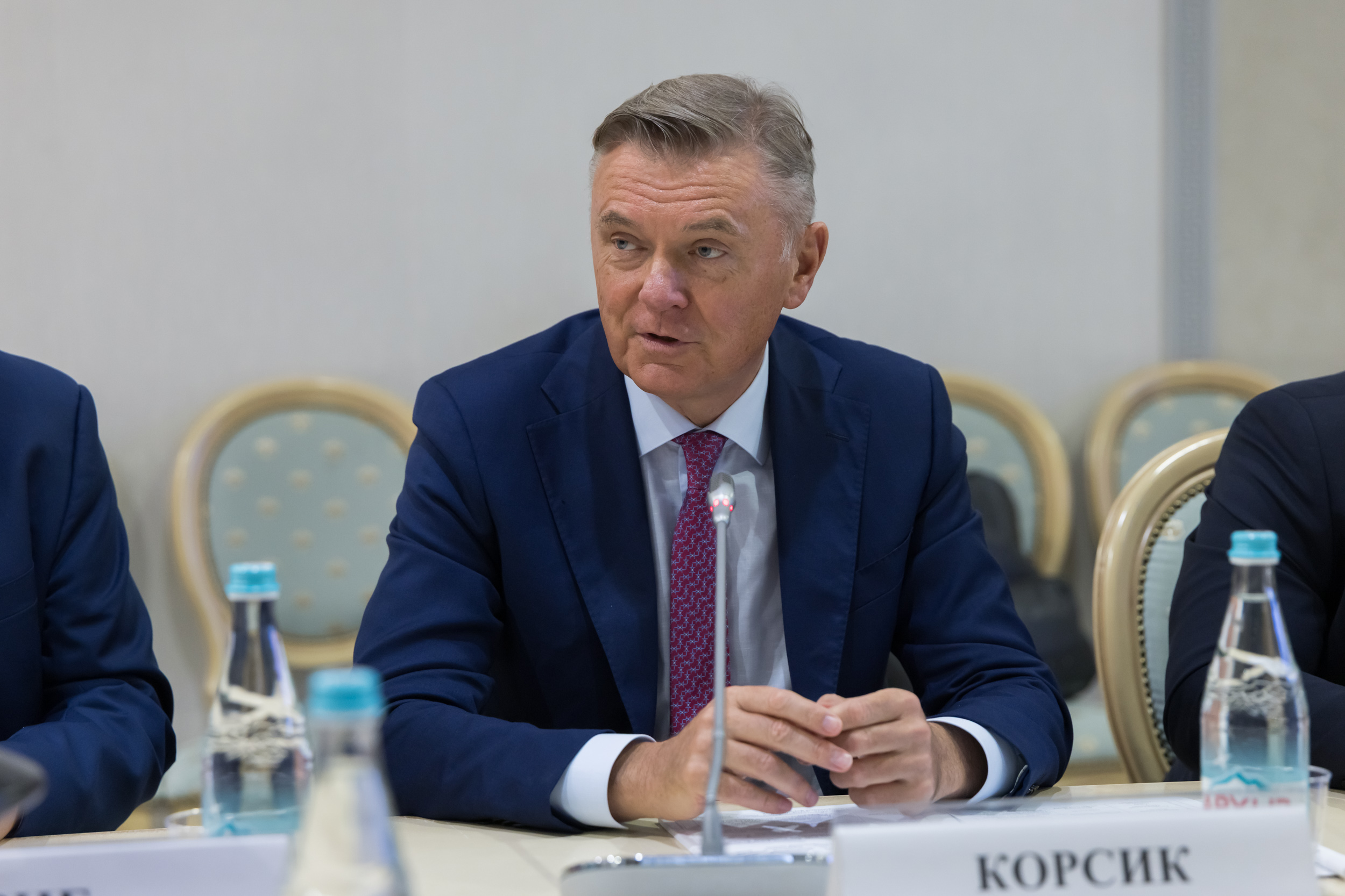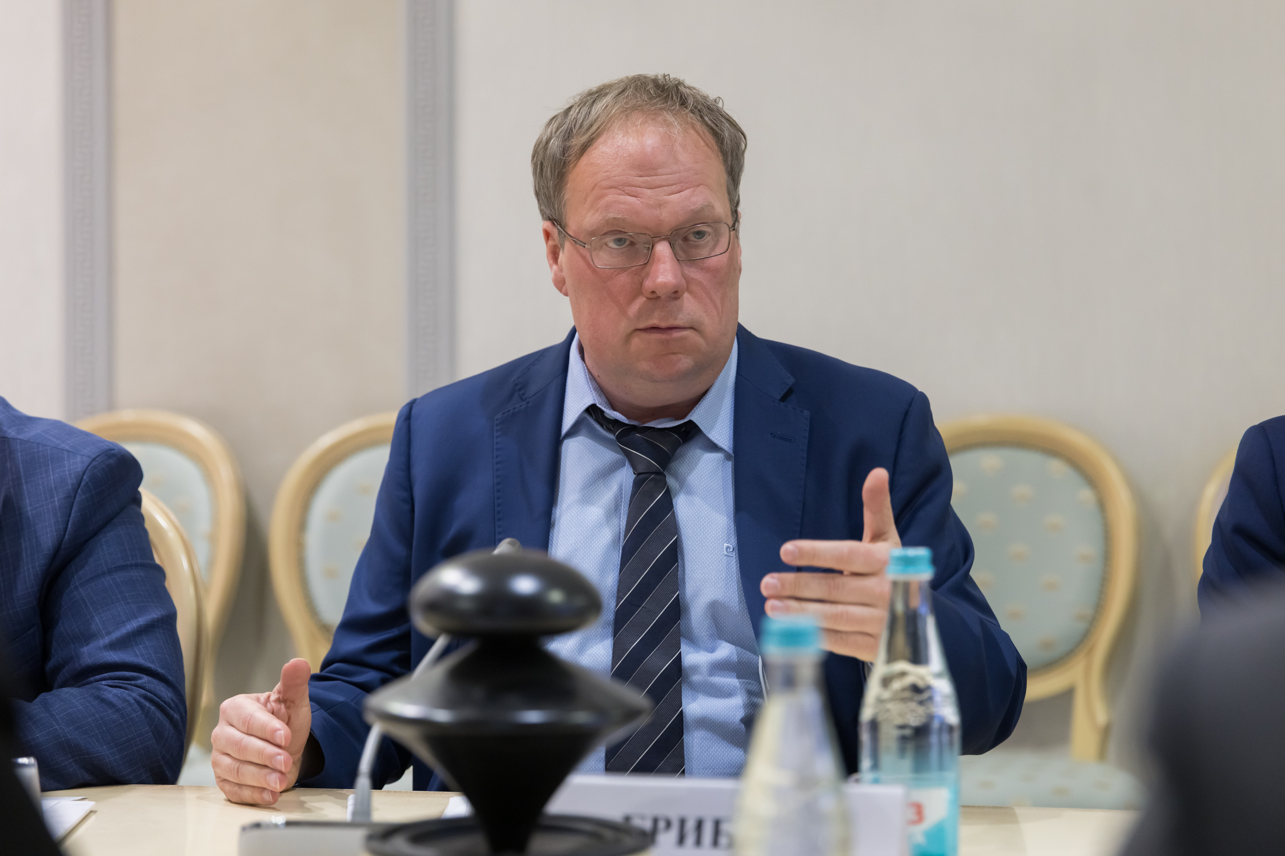 Модератором круглого стола выступил президент Федеральной нотариальной палаты, председатель Комиссии Общественной палаты РФ по общественной экспертизе законопроектов и иных нормативных актов Константин Корсик.